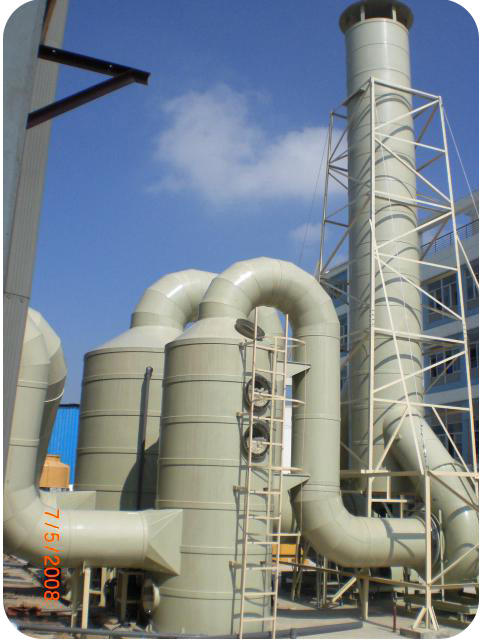 外部气体进入塔体后,气体进入填料层,填料层上有来自于顶部的喷淋液体及前面的喷淋液体(二层喷淋),并在填料上形成一层液膜,气体流经填料空隙时,与填料液膜接触并进行吸收或中和反应,填料层的表面积依据废气处理量而设定,对气体流动又不致造成过大的阻力,经吸收或中和后的气体经除雾器收集后,经出风口排出塔外。